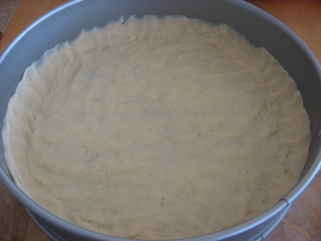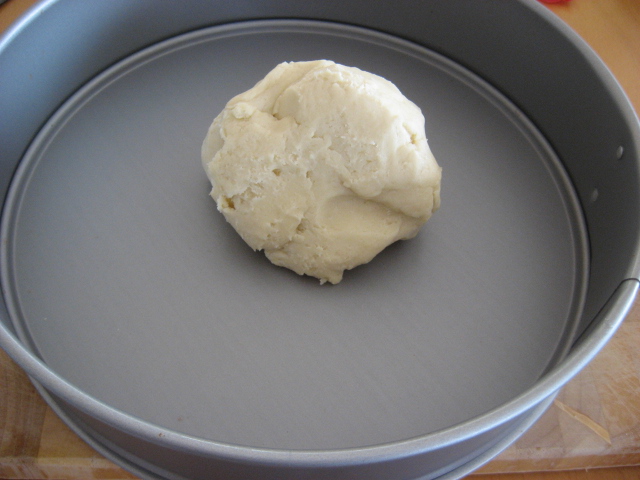 משטחים את הבצק בעזרת הידיים בתבנית פאי/קפיצית.